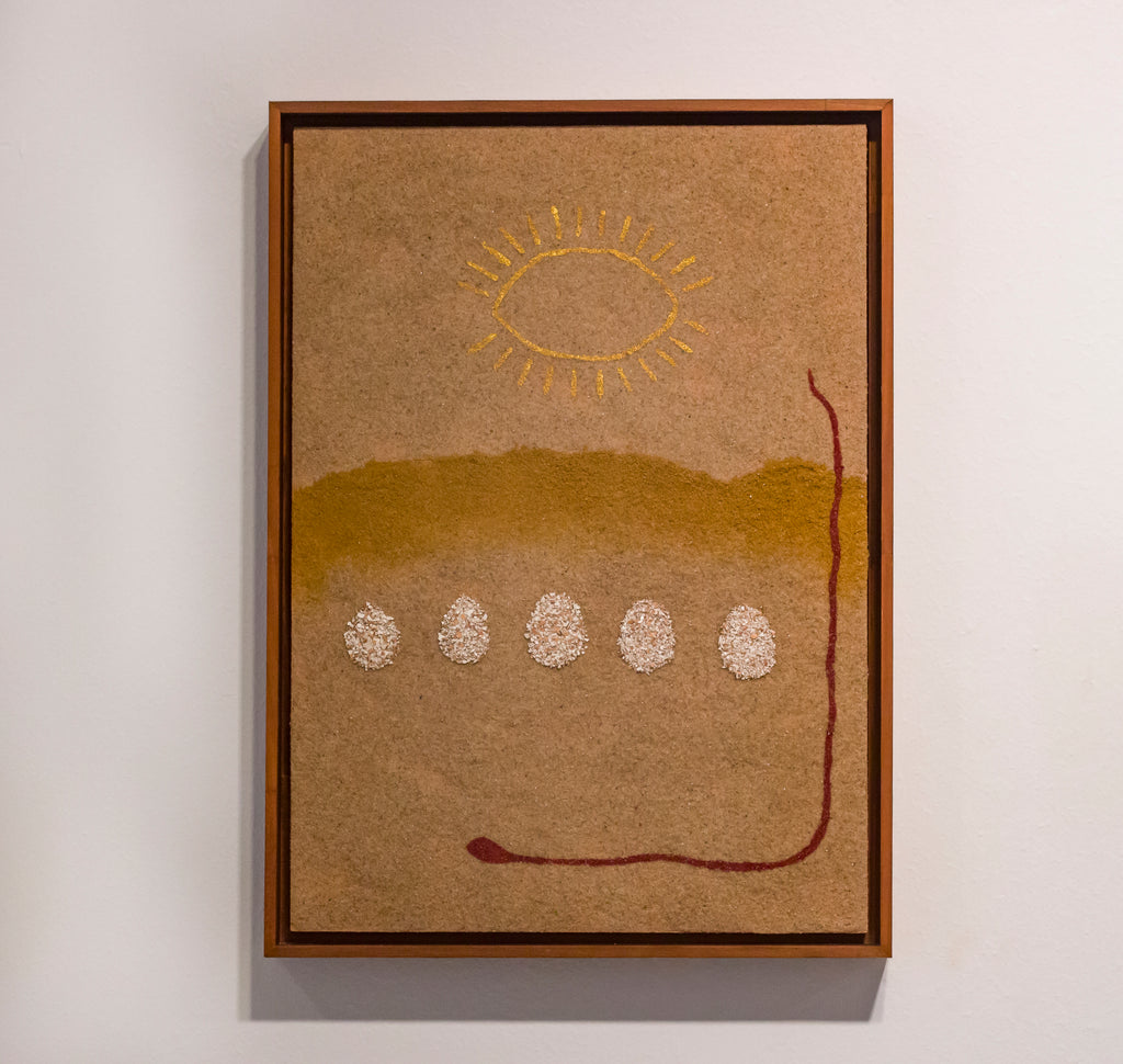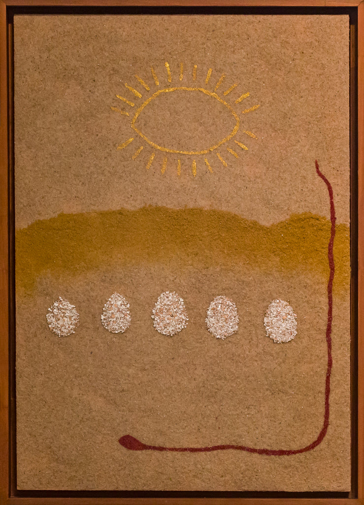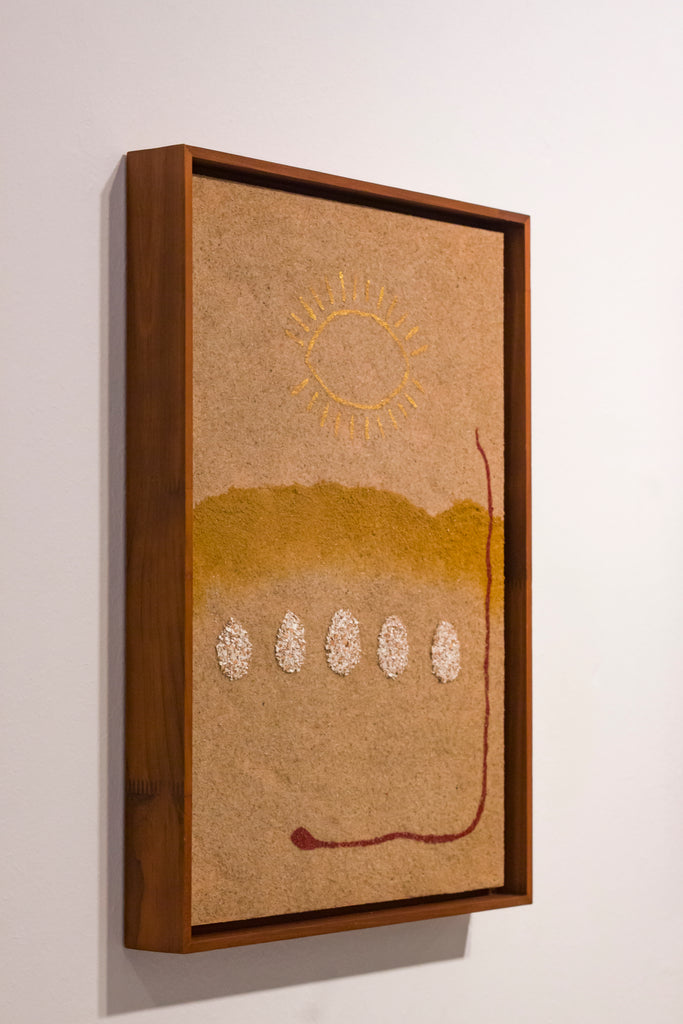 Técnica: Areia, pigmentos, acrílica, e casca de ovo sobre madeira
