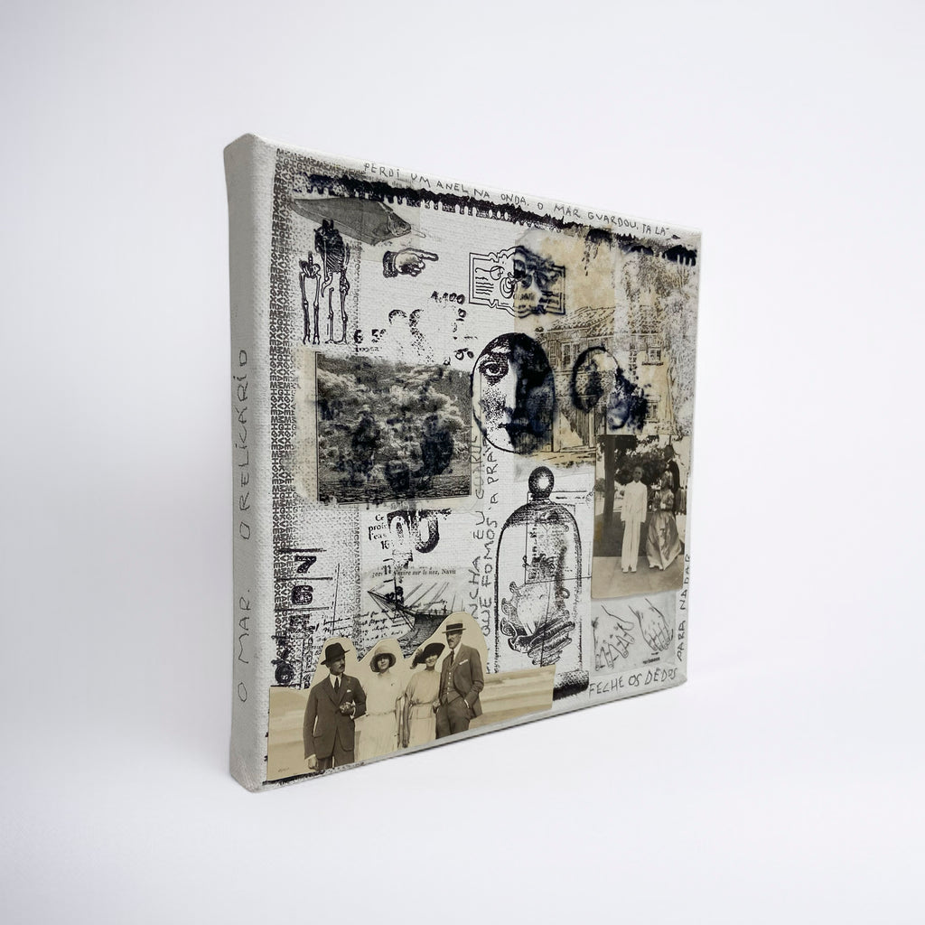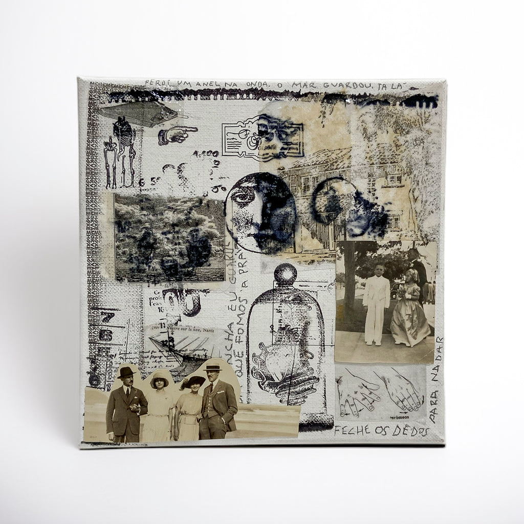 Técnica: Carimbos, colagens, transfers, desenhos e fotografias coletadas em antiquários sobre tela.
