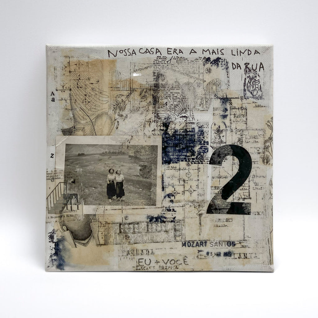 Técnica: Carimbos, colagens, transfers, desenhos e fotografias coletadas em antiquários sobre tela.